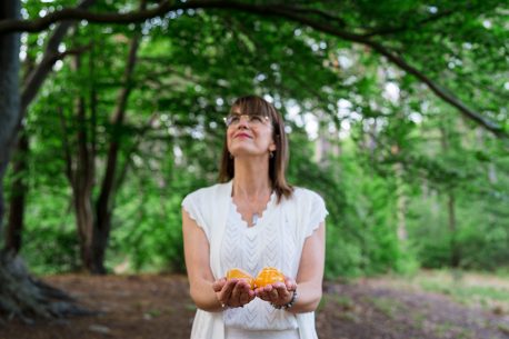 Hier ga ik masseren met het edelsteen oranje calciet. Dit edelsteen heeft een bemoedigende energie en zet op een positieve manier aan tot verandering . Dit kristal resoneert met het sacraalchakra; het stimuleert creativiteit en transformeert lusteloosheid in hernieuwde energie.